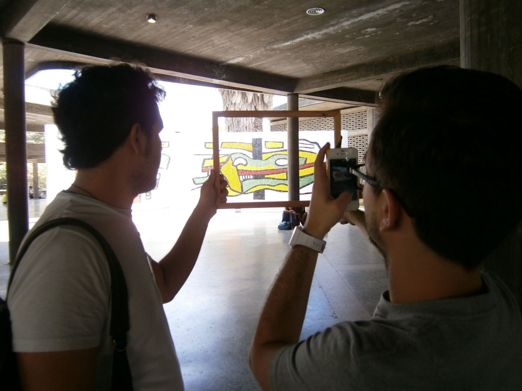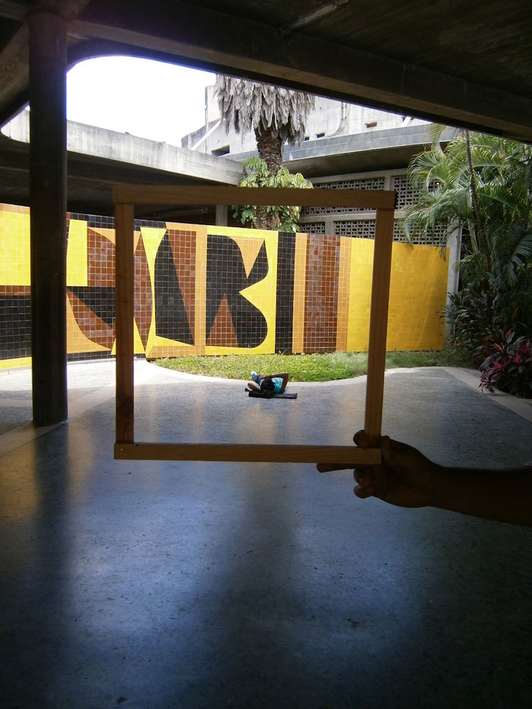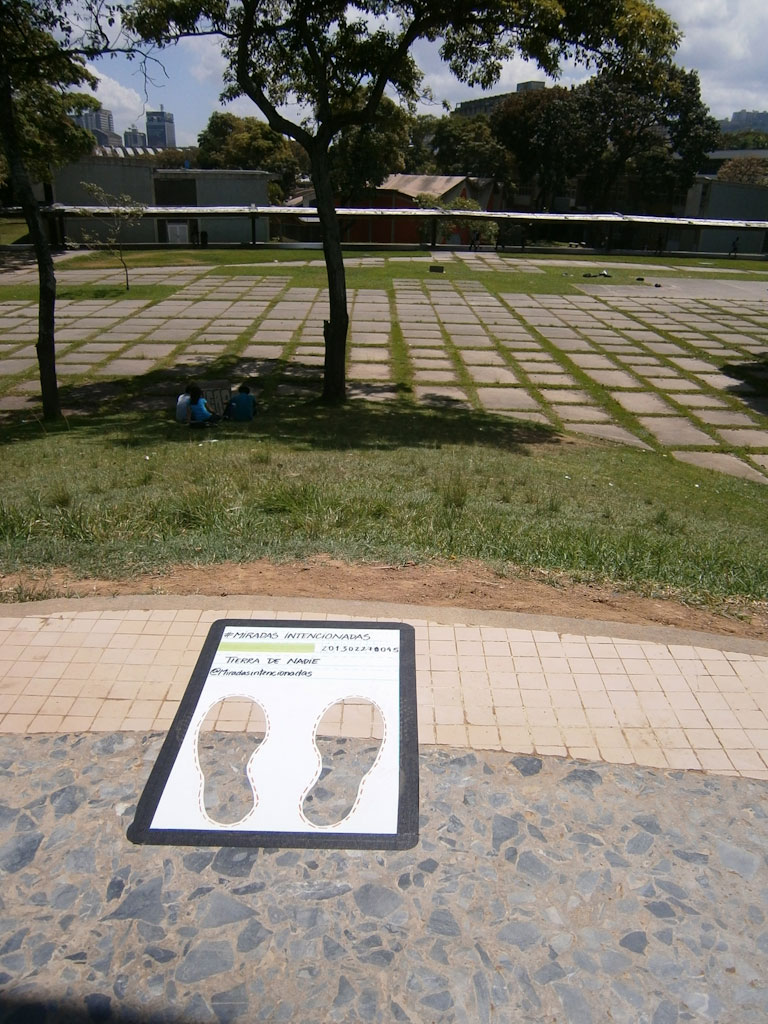 #Intended Looks consists in the selection of «looks» of places of interest with the intention that the view of the initial observer can be replicated and shared by other observers. In order for this sensation to be repeated as accurately as possible to the original, a signal is placed on the floor containing the information to carry out the experience. In this sign there are some traces that mark the position in which the observer must be placed next to a text with the name chosen for the «look», the name of the initial observer and the categorization of the same. Finally, the observer is invited to take a photograph of their «look» and share it through social networks. The pilot experience included 16 «looks» of the spaces in the Plaza Cobertura of the Ciudad Universitaria de Caracas, using as observer @miradasintencionadas (Instagram) and / or @miradas_int (twitter). The photos of the «looks» made can be placed on the social networks under the hashtag #miradasintencionadas, classified into four categories: architecture (blue), art (yellow), landscape (green) and activities (red).
