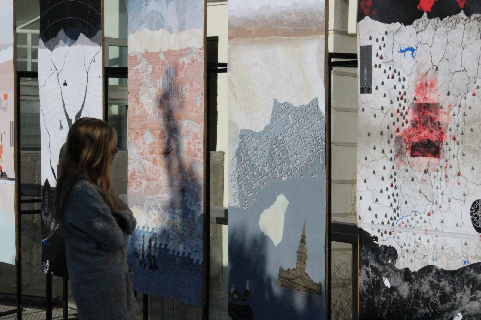 Ecologies of Progress. La estrecha geografía de Chile abarca más de 40 paralelos, midiendo 4300 km N-S por solo 350 km E-W. Sin embargo, solo un área central relativamente pequeña del país es propiamente urbana y domina en términos de población, infraestructuras y recursos agrícolas. El taller Ecologías del progreso exploró las relaciones entre el imaginario del desarrollo urbano, las aspiraciones de identidad nacional y la realidad del paisaje chileno a través de un simple acto: el de la representación. En cada latitud, los estudiantes recolectaron una selección heterogénea de materiales enfocándose en una narración específica y relevante. Estos microordenadores locales son diversos en escala y rango de influencia, y se ensamblan utilizando fragmentos de diferentes fuentes, que muestran aspectos de una historia más amplia que no necesariamente coincide con la de su creciente perfección. Es más bien la historia de sus condiciones de posibilidad. 17 ° – 18 ° – 19 ° _El borde de los hitos construidos. El territorio chileno está bordeado por la imposición de hitos naturales como los Andes y el Océano Pacífico. Sin embargo, en el paralelo 17 ° – 18 ° – 19 °, justo donde es una de las zonas más áridas y secas del mundo, no hay presencia de montañas o mar que defina los territorios de las naciones poscoloniales. Chile, Bolivia y Perú han luchado por la soberanía de este territorio a lo largo de su historia, y aparentemente esto continuará en el futuro. Para que esta situación no dure en el tiempo, el hombre es uno que ha sido comisionado para construir hitos artificiales en este territorio: Hito 1, estación fronteriza Chacalluta o Tripartito; pero son infinitamente más pequeños que las montañas cercanas, su imagen fronteriza tal vez es más impresionante que las montañas. Si la naturaleza no define el territorio, el hombre lo hará.