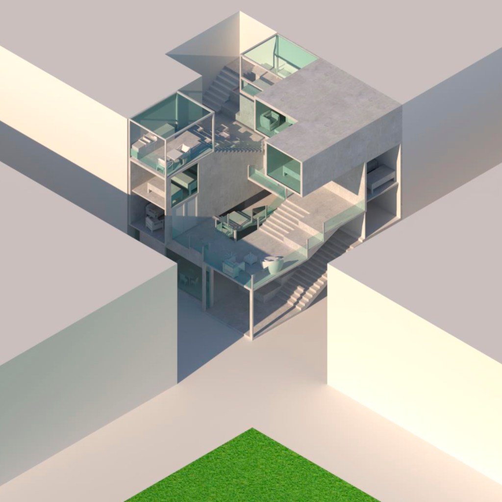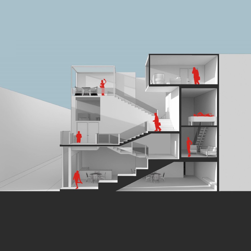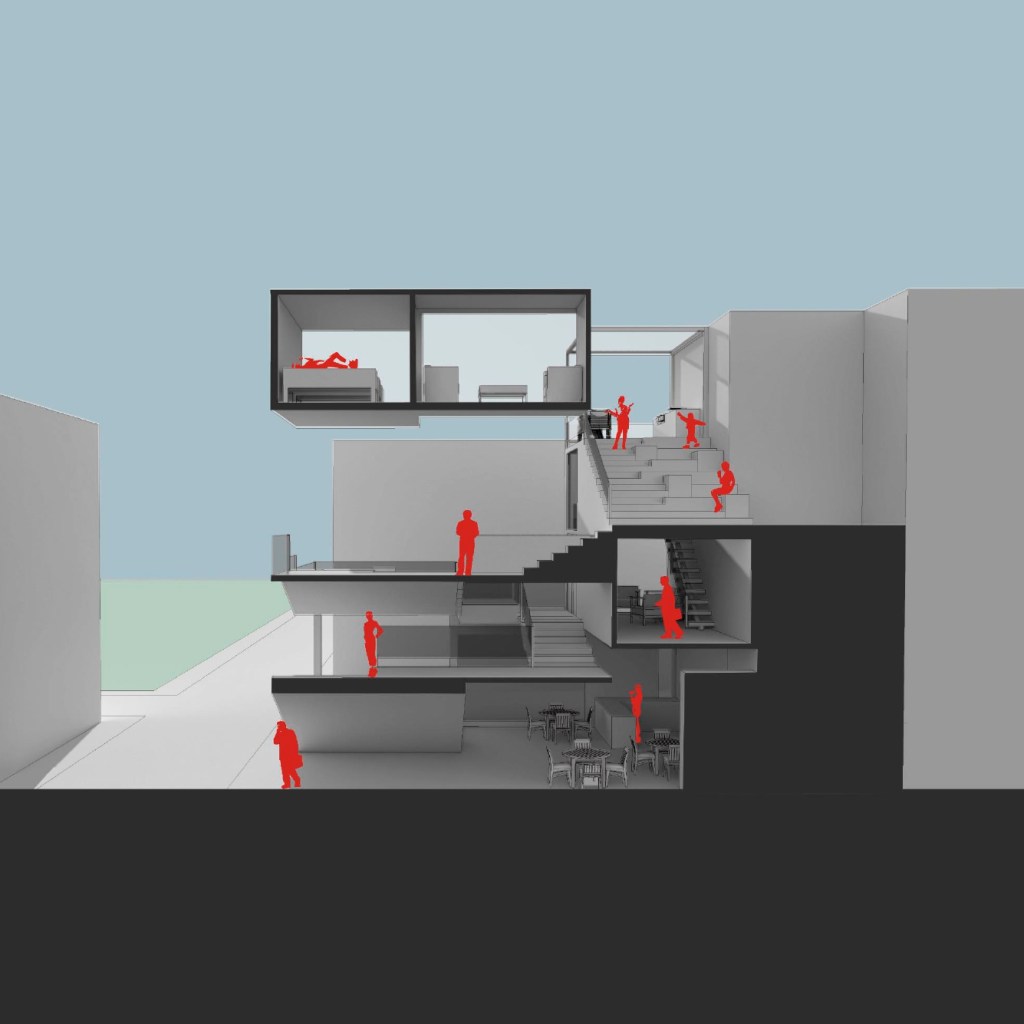 Para esta ocasión, se propuso diseñar una residencia estudiantil a partir de la repetición y adaptación un habitáculo previamente diseñado por cada estudiante en un lote medianero de 1.350 m2.