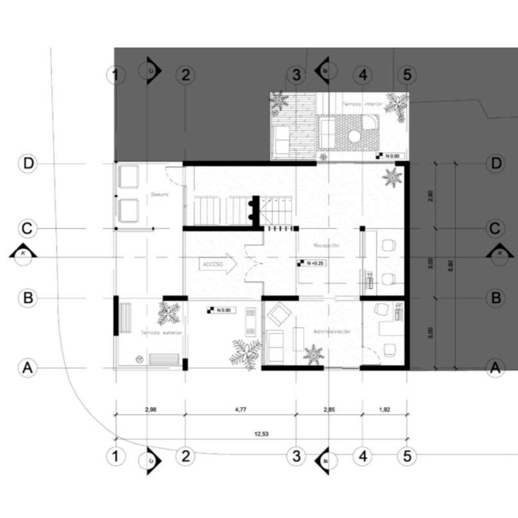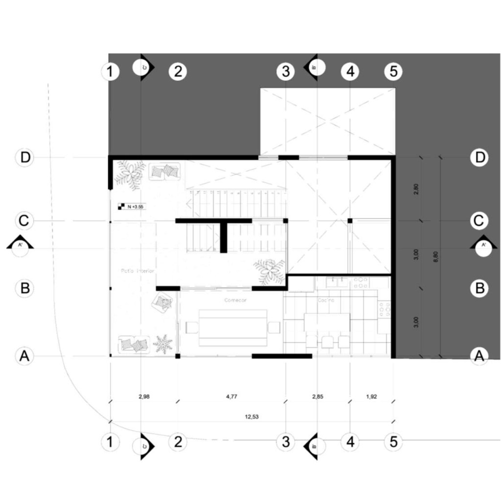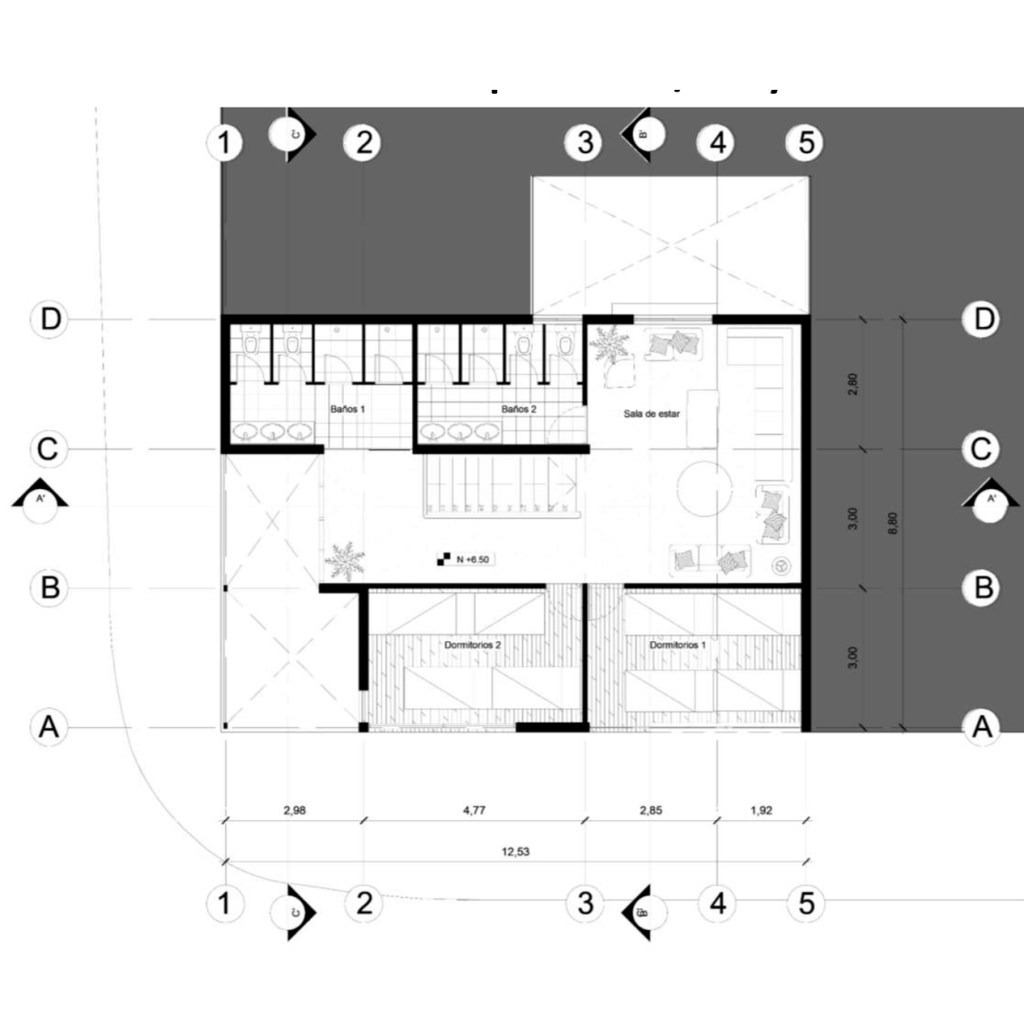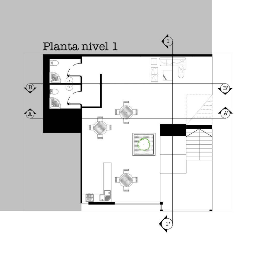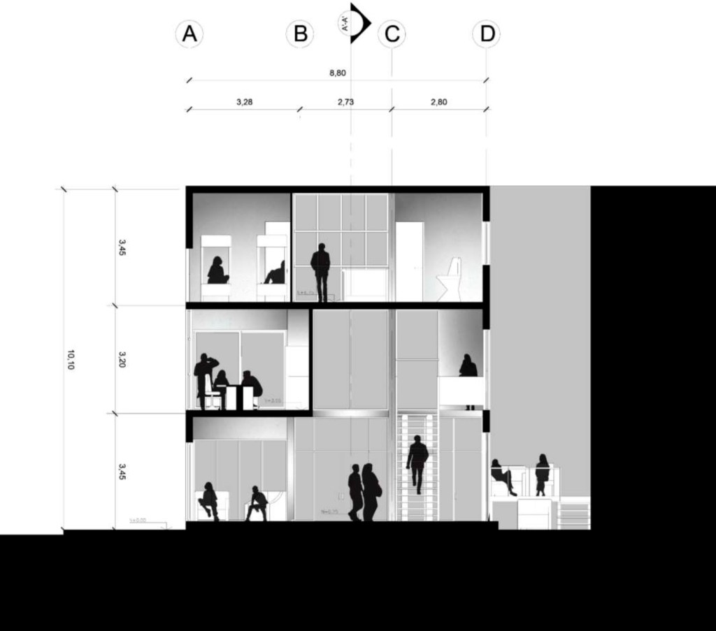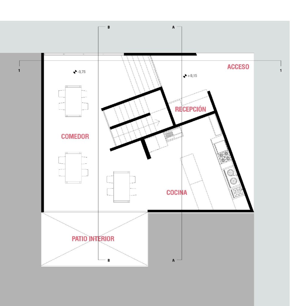 Given a lot defined by a rectangular polygon √2 of side 9 m., Located in a corner and diagonally related to a public square; the exercise consists of the design of a hostel for travelers in which domesticity can be approached from the recognition of public, semi-public and intimate instances, and linked to each other by circulation systems.