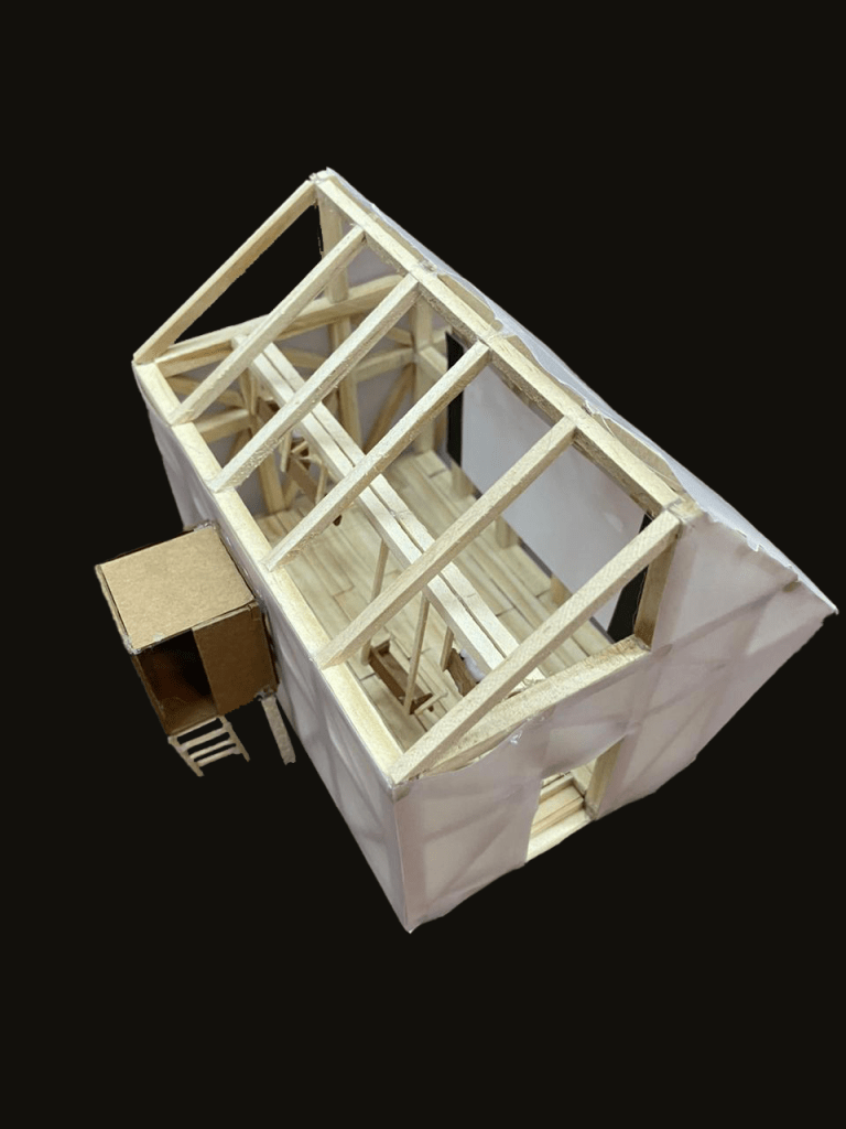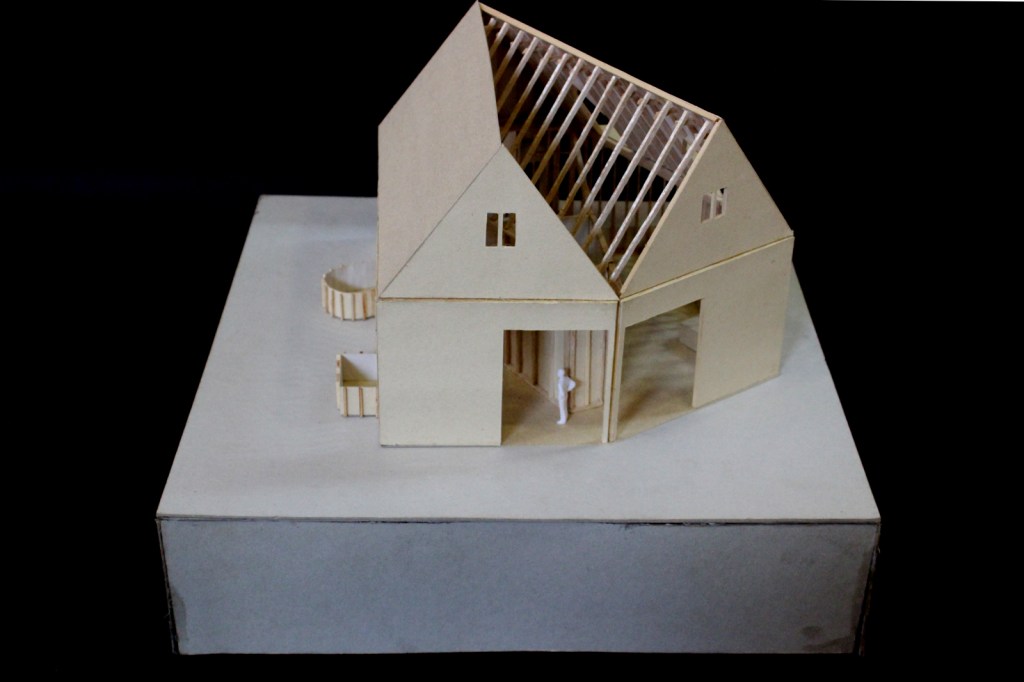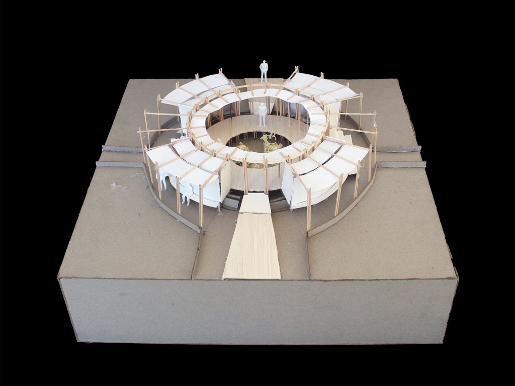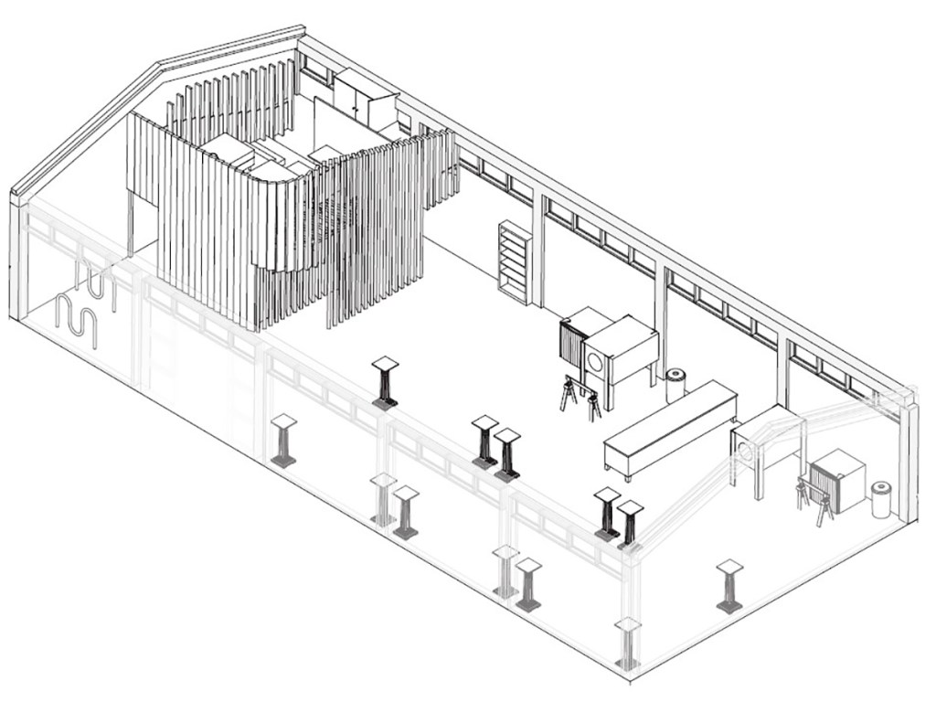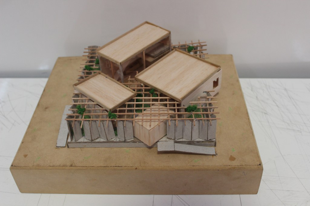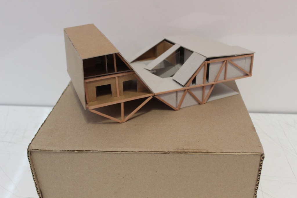 Para esta ocasión, se propuso diseñar un habitáculo de 20 m2 dentro de un galpón de 180 m2 para dos artistas, cuyas principales actividades son dormir, comer, cocinar, asearse, conversar, circular. El objetivo del ejercicio es trabajar sobre la formalización de un proyecto, su sentido de implantación y reconocimiento del programa y su forma concomitante respecto los actos que “albergará”.