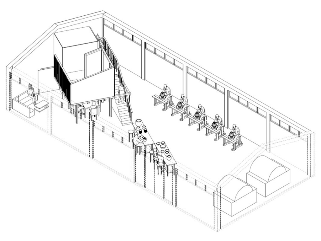 For this occasion, it was proposed to design a 20 m2 room within a 180 m2 warehouse for two artists, whose main activities are sleeping, eating, cooking, washing, talking, circulating. The objective of the exercise is to work on the formalization of a project, its sense of implantation and recognition of the program and its concomitant form regarding the acts that it will “host”.