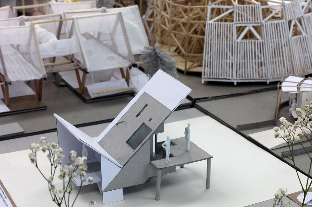 El taller de arquitectura de cuarto semestre ‘Artefactos cotidianos’ estuvo enfocado en el desarrollo de competencias por parte de los estudiantes en conceptualización y diseño del espacio arquitectónico, a partir del trabajo continuo en aula. En esta ocasión, se abordó la noción de ‘artefacto’: «… interesan particularmente, aquí, aquellos dispositivos de proyecto capaces de favorecer procesos dinámicos y – en último término- repentinos «cambios de escala» en el lugar (…) La arquitectura no puede limitarse, en efecto, a «extender» el cuerpo, sino que debe ser un suplemento activo y funcional, un mecanismo autónomo y receptivo a un tiempo, «extraño» y a la vez sensible a lo particular, capaz de regirse por sí mismo y, al mismo tiempo, sostener y potenciar al anfitrión” (Bauza, Salazar, 2013). Por lo tanto, cada estudiante debía diseñar tres ‘artefactos’ para cuatro a seis personas de 40 m2 aprox. dentro de los espacios de una edificación existente con tres programas diferentes: 1) ‘artefacto’ doméstico para dormir, comer, cocinar, asearse, conversar o almacenar; 2) ‘artefacto’ lúdico para recrearse, divertirse, leer, dibujar, escuchar música; y 3) ‘artefacto’ productivo para realizar un oficio, trabajar o exponer sus productos.
