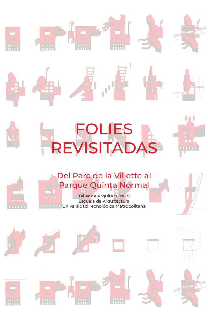 Esta publicación recopila el trabajo del curso ‘Folies revisitadas. Del Parc de la Villette al Parque Quinta Normal’. Taller de Arquitectura IV, Escuela de Arquitectura. Universidad Tecnológica Metropolitana. Bajo la premisa didáctica de que el proceso de aprendizaje en taller se puede reforzar con la revisión, redibujo y análisis de referentes arquitectónicos, el presente ejercicio está enfocado en estudiar en su contexto original la tipología de folie propuesta por Bernard Tschumi para su propuesta del Parc de la Villette en París, Francia, así como su reinterpretación a partir de su incorporación en la propuesta de remodelación del Parque Quinta Normal de Teodoro Fernández y Danilo Martic en Santiago, Chile. En la propuesta de Tschumi, todas las folies -construidas o no- forman parte de un único proyecto, es decir, cada una es parte fundamental de una colección. Por esta razón, colectivamente los estudiantes levantaron, redibujaron y analizaron las folies del Parc de la Villette con el objetivo de entender la pauta compositiva y programática de éstas y así poder abordar 40 años después de la experiencia de Tschumi el diseño de otras folies que se implantan en el Parque Quinta Normal.